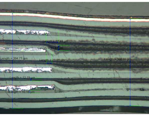 激光鉆孔腔可提供任何方法中的精度和位置精度。由于去除了介電材料,激光束受到精確控制,以實現(xiàn)均勻的深度控制和磨損。由于激光通常使用大波長,因此它無法穿透銅層,從而為該過程建立了定義明確的停止層。在形成腔之后,添加各向異性導(dǎo)電粘合劑物質(zhì),并將組件放置在空隙中。在特定壓力下將熱量施加到系統(tǒng)上,以熔化分散在粘合劑材料中的焊料顆粒并形成可靠的焊料鍵合。